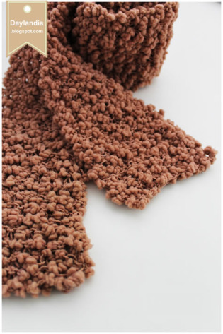 Este cachecol eu fiz com um dos novelos que a Coats me enviou. Não tinha trabalhado com bolinhas tão delicadas antes, e o resultado foi ótimo, super macio ao toque e rende muito. Boa receita para iniciantes e para quem quer dar um belo cachecol ao namorado. Boas tricotadas – Day.